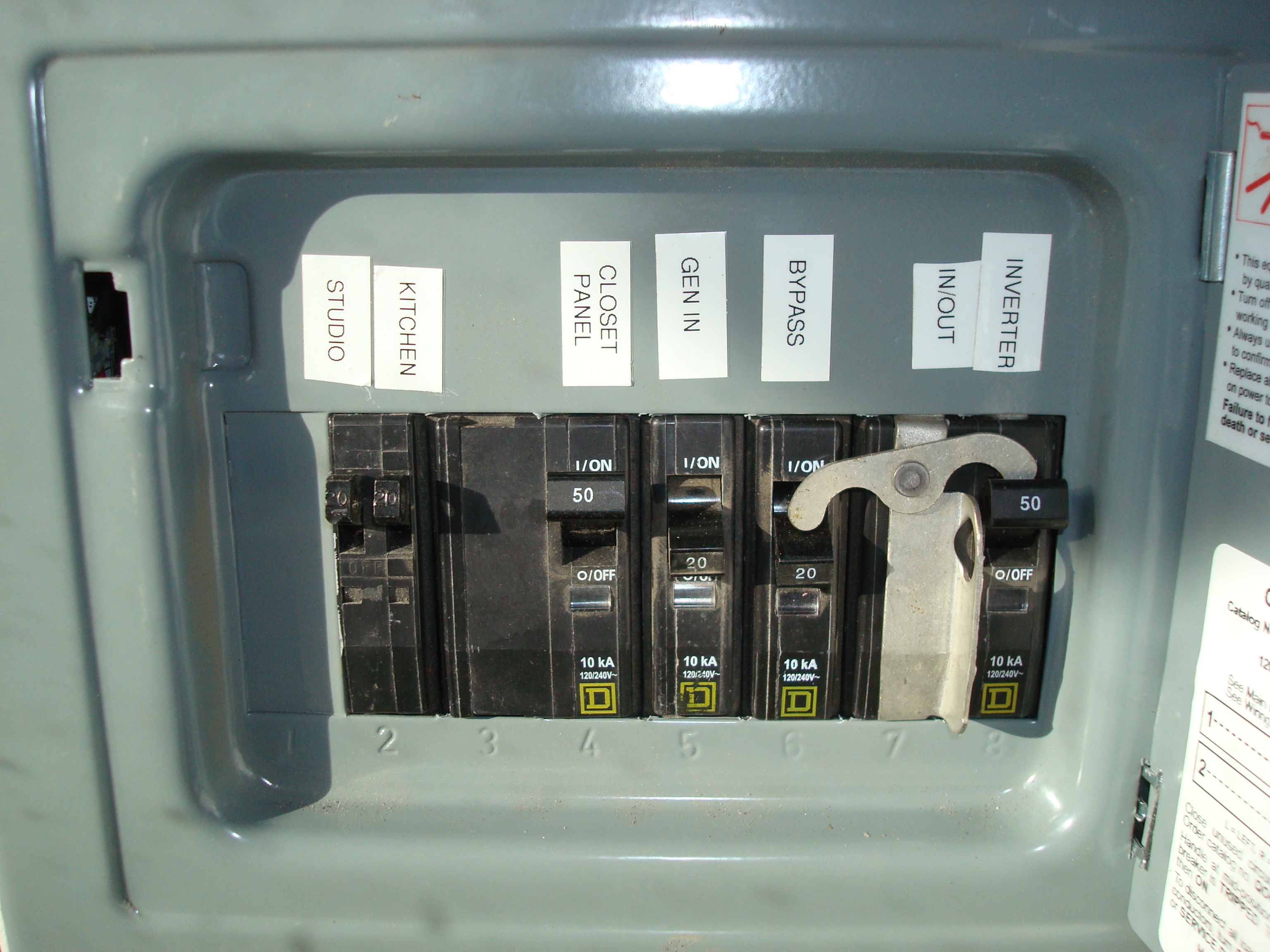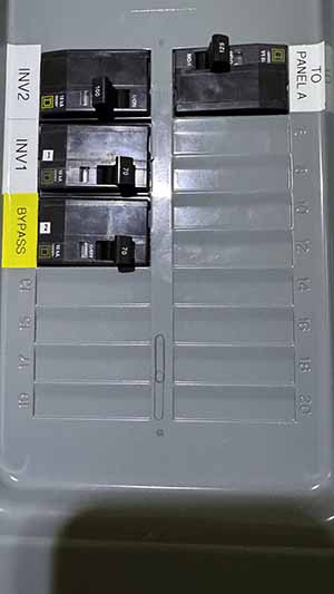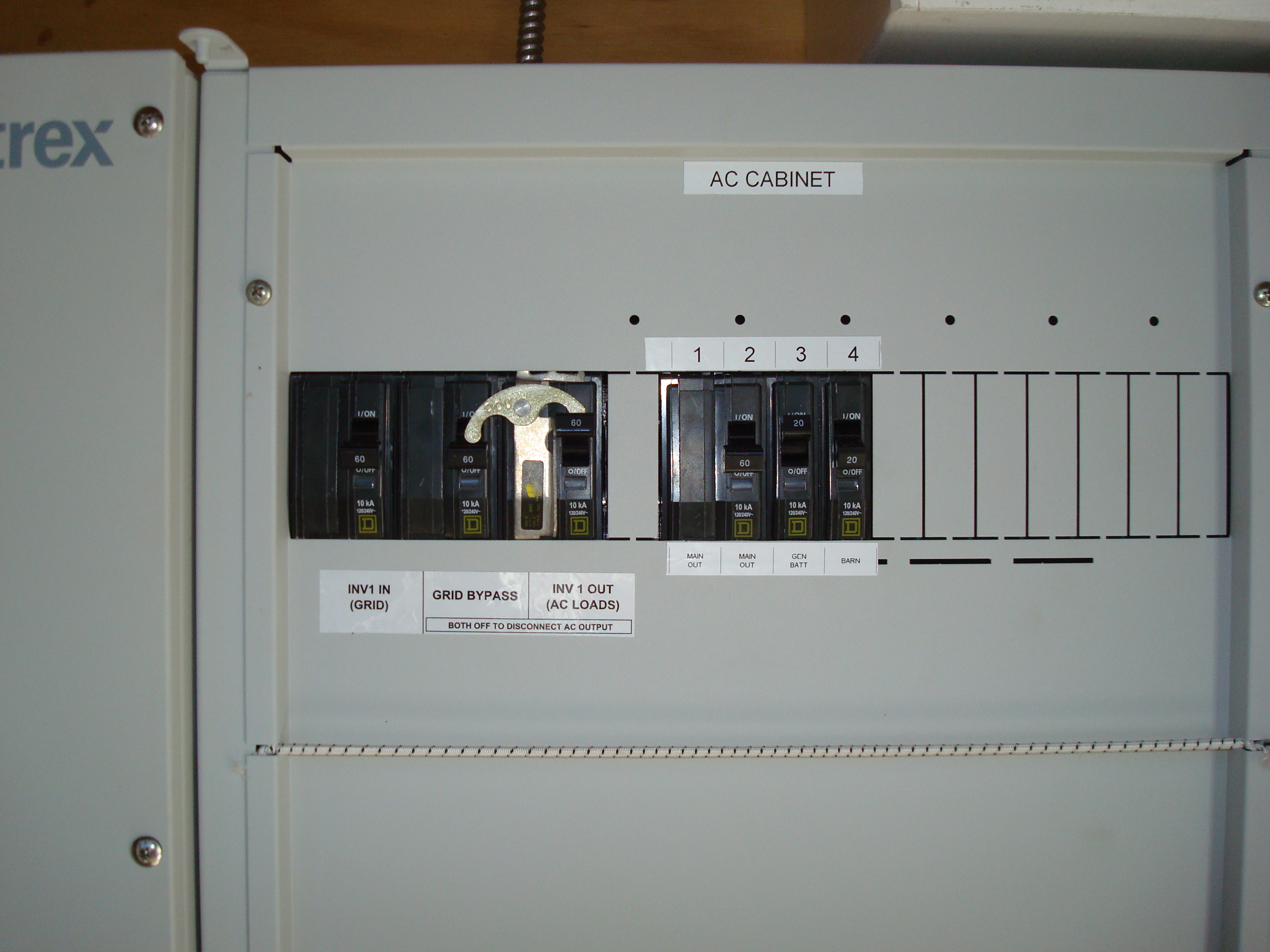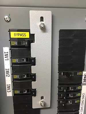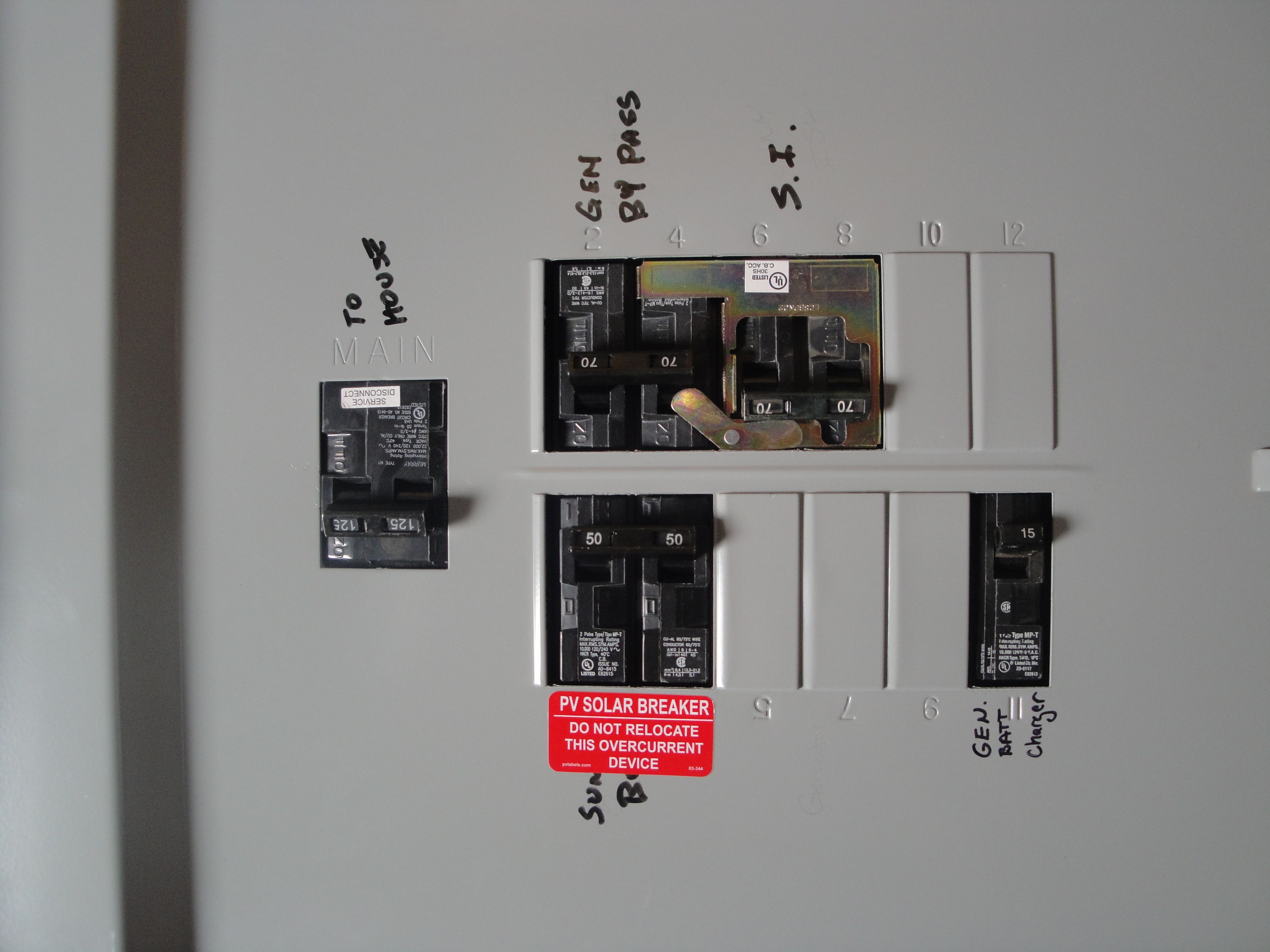 If you have no more than one inverter to bypass, the interlocks provided by a breaker panel manufacturer might be adequate, although they are not all well designed and some operate awkwardly. If, however, you have more than two inverters to bypass, none of the factory manufactured interlocks will work. |