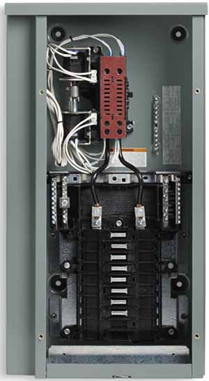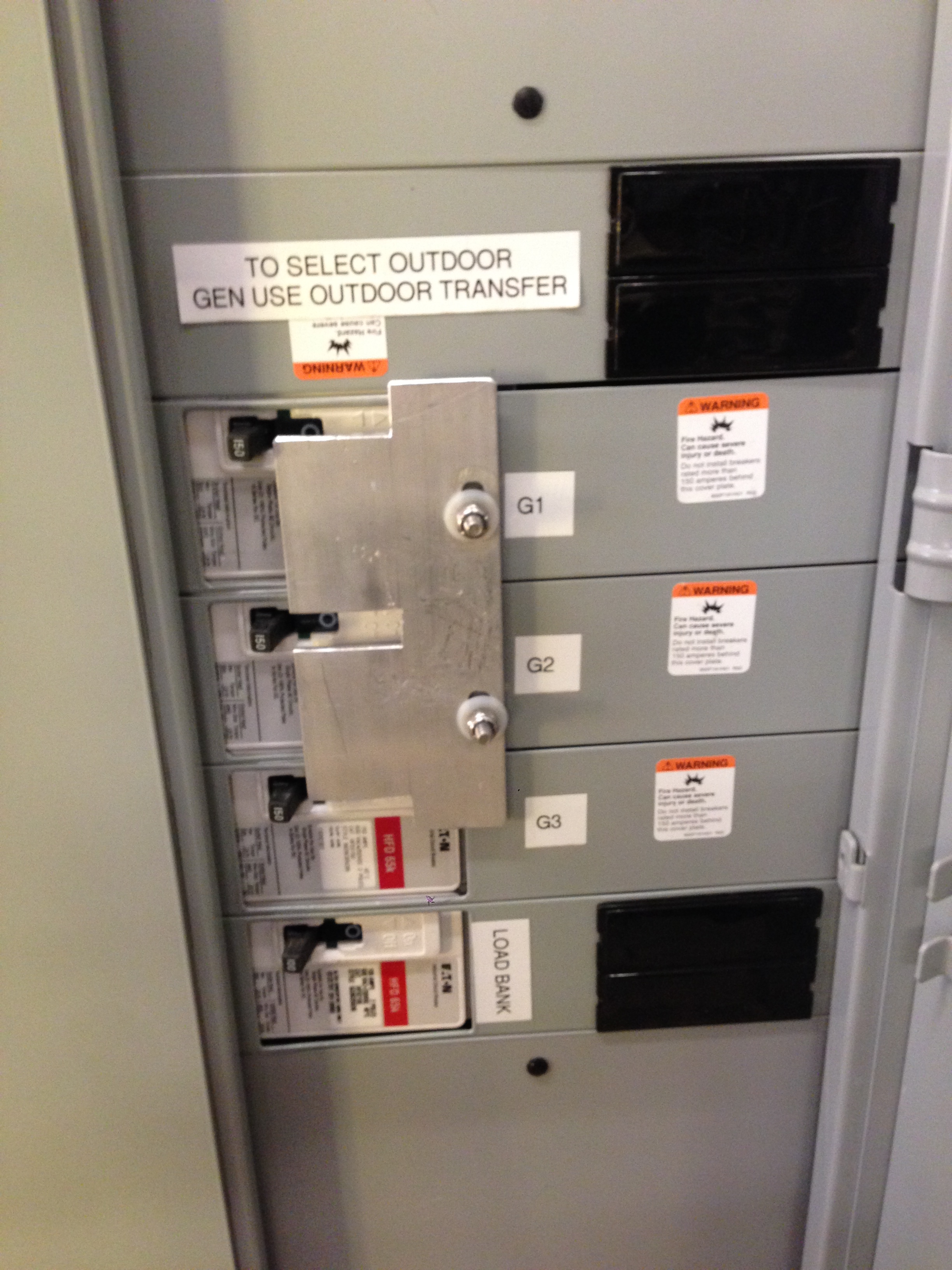 Instead of purchasing expensive and bulky manual transfer switches it is possible to provide bypass capabilities using interlocks fitted to Off-the-Shelf breaker panels. | |