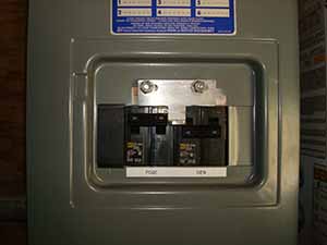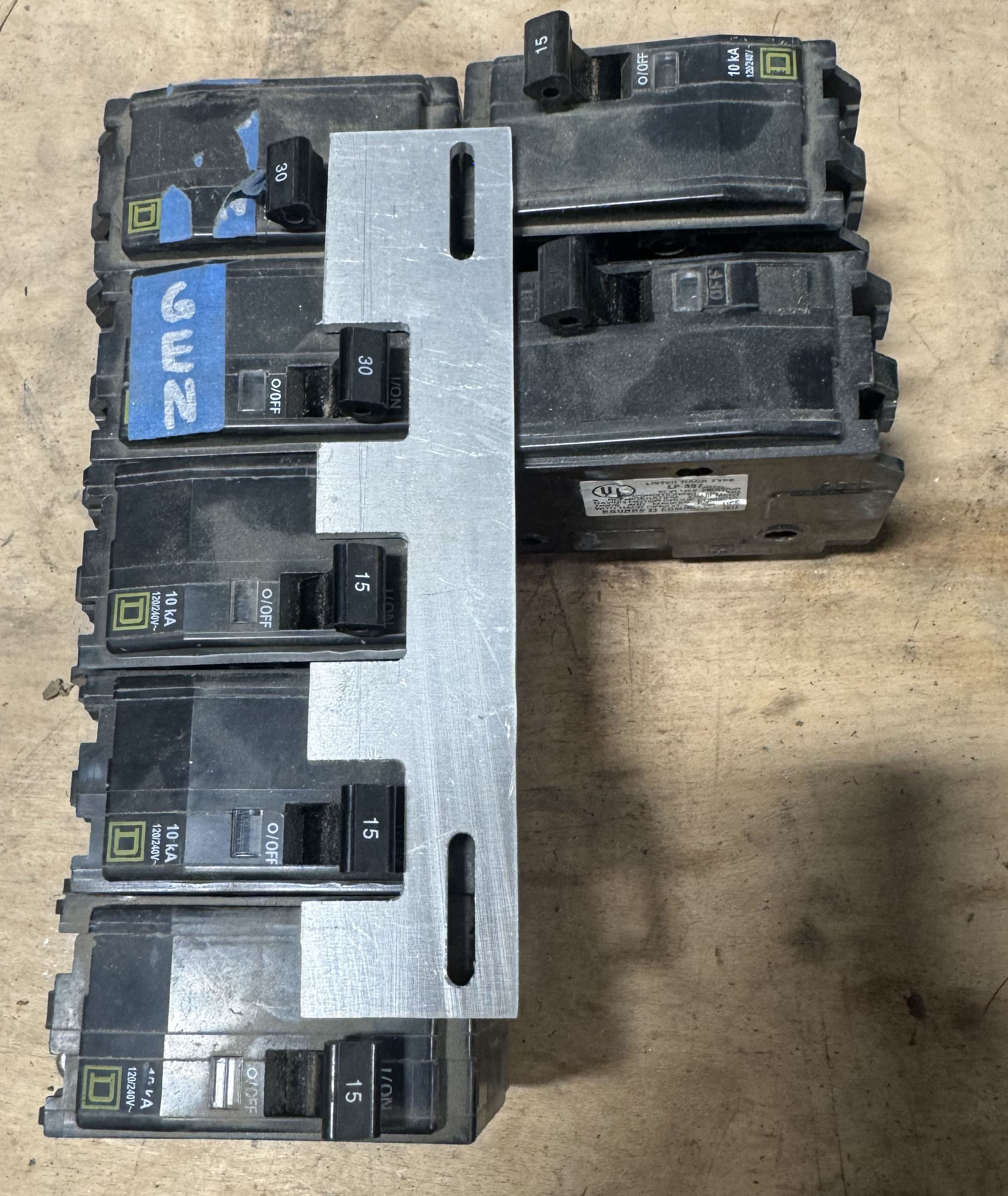 Small Square D QO panel. Two 2-pole breakers interlocked. |
