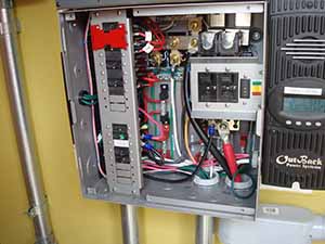 This is a Xantrex XW system we installed with a simple bypass interlock. |