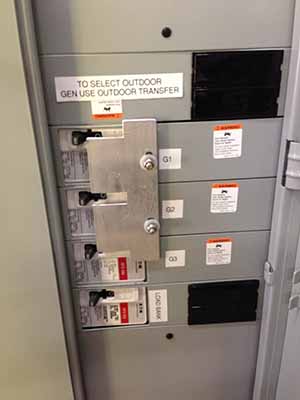 This one is a bit different: there are 3 backup generators in this facility and this interlock allows the selection of only one generator at a time. |