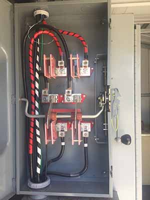 2. Newer inverters are not offered with any BOS cabinets. They have input and output circuit breakers within the inverter cabinet but there is no bypassing feature offered. These inverters are suggested to be installed with the expensive manual transfer switches. See below. |